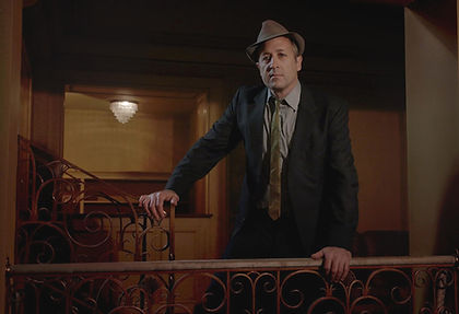 together at first, with Theresa seductively descending and Eric waiting for her at the base of the stairs. Both of them then performed the full scenario by themselves. In order to compress the timing, several takes are blended in a series of dissolves and camera angles to heighten his anticipation and disappointment in losing her. I believe that we made a scene that resonates as their near miss happens during the song’s lyric “I dreamt that I was holding you tight.”